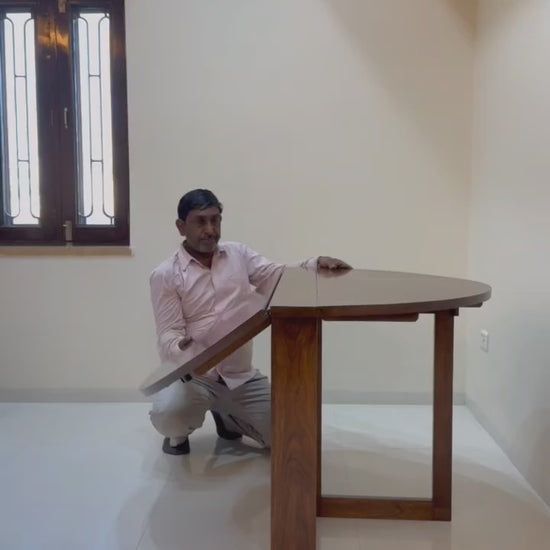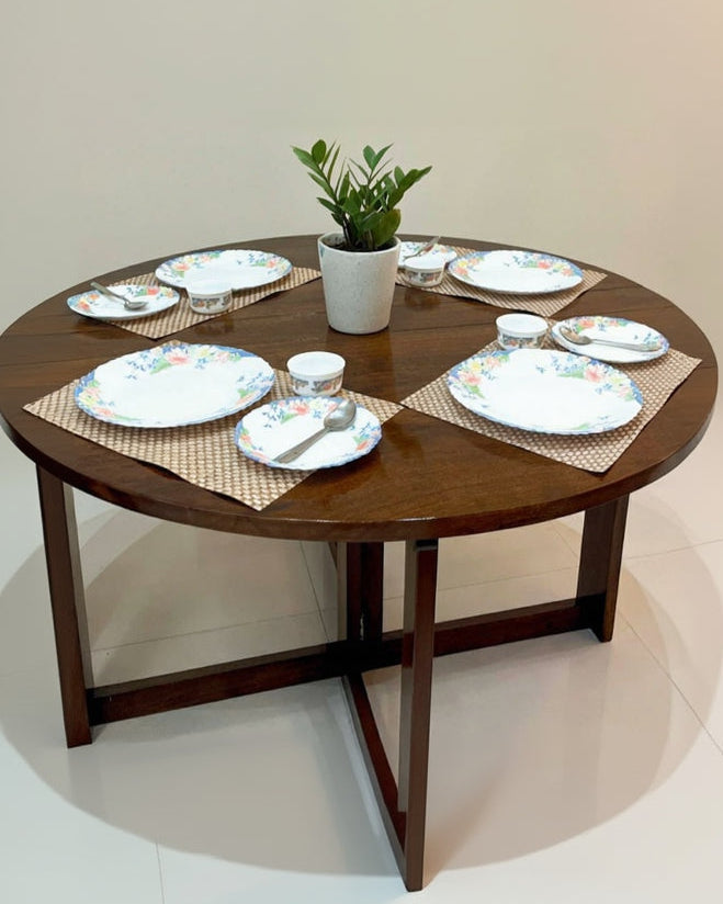 This foldable round dining table combines practicality with elegance, crafted from strong solid wood for lasting durability. Its space-saving design makes it perfect for compact areas, allowing you to enjoy meals comfortably without sacrificing room. Easy to fold and store, it adapts effortlessly to your lifestyle while adding a warm, natural touch to your dining space. Ideal for those seeking both functionality and style in one versatile piece.