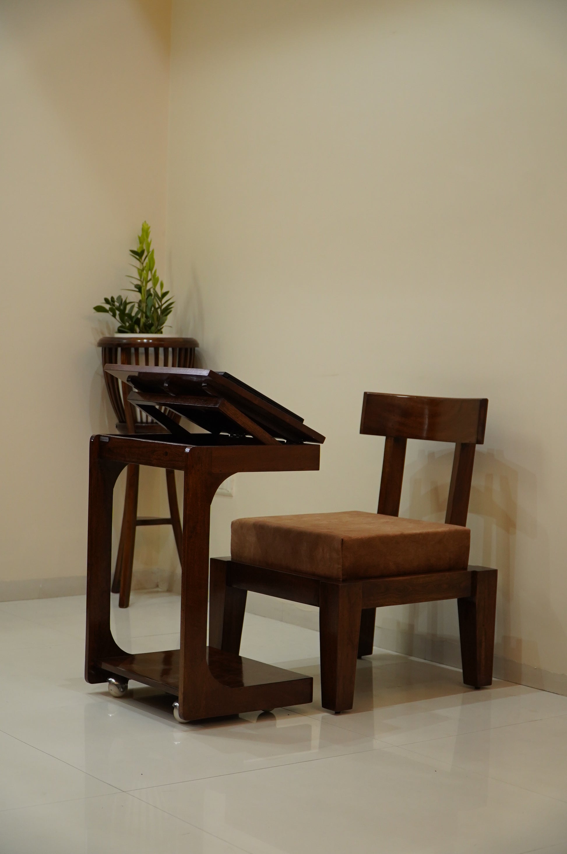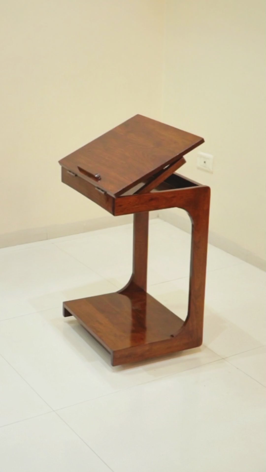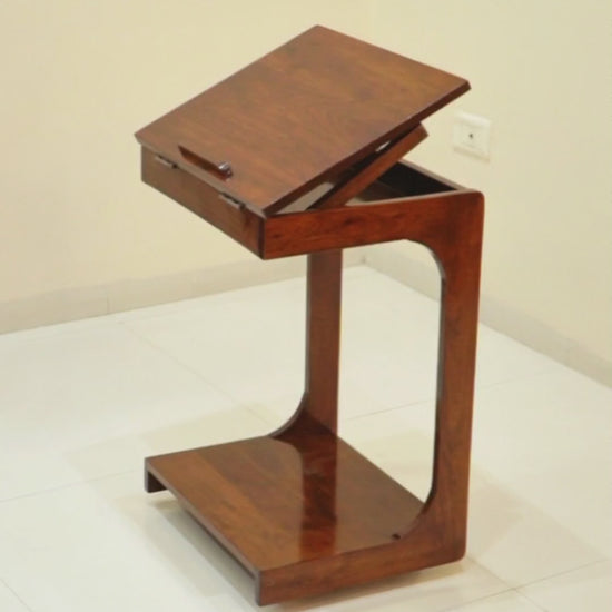 This movable work table offers versatility and convenience with its small storage unit and adjustable incline. Work comfortably from anywhere as it can easily fit under a sofa and has wheels for easy mobility. Perfect for those looking for a practical and efficient work solution.