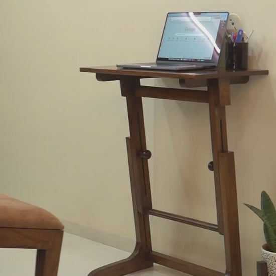 Crafted from durable solid wood, this study table offers a manual height adjustment feature to suit your comfort and posture needs. Its sturdy construction ensures long-lasting use, while the adjustable height promotes ergonomic seating, helping you stay focused and productive during study sessions. Ideal for any workspace, this table combines functionality with timeless design.